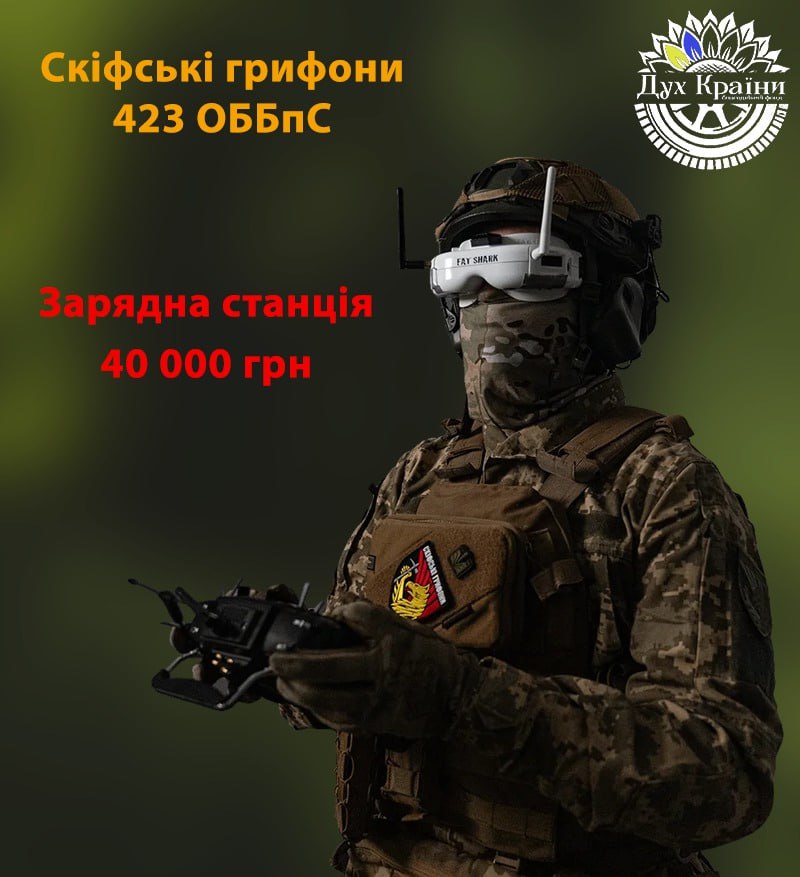 Благодійний фонд "Дух Країни" оголошує збір на зарядну станцію для окремого батальйону беспілотних систем Скіфські Грифони.30.03.2026Мета:40 000 ₴