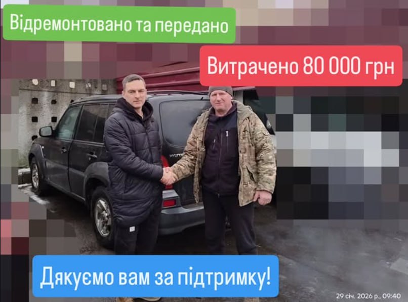 80 000 ₴ (UAH)Благодійний фонд "ДУХ КРАЇНИ" відремонтував та передав бійцям ЗСУ Hyundai Terracan